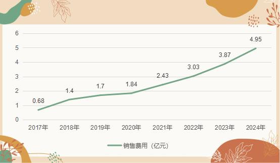 贝壳财经记者注意到,近年来,中宠股份的销售费用逐年走高,已经从2017年的不足1亿元飙升至2024年约5亿元。2025年上半年,中宠股份的销售费用约为2.97亿元,同比增长35.81%,主要系报告期境内和境外自主品牌宣传投入增加。
